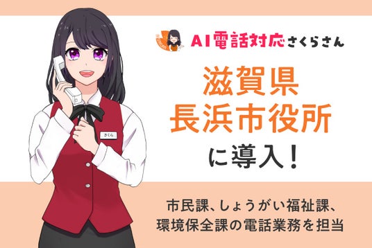 株式会社ティファナ・ドットコムが提供するAIさくらさんが、令和6年度長浜市DX実証実験プロジェクト事業の取り組みの一環として、滋賀県長浜市に実験的に導入されます。市民課、しょうがい福祉課、環境保全課の電話業務をAIさくらさんが担当することで、職員の業務効率化と市民サービスの利便性向上を目指します。