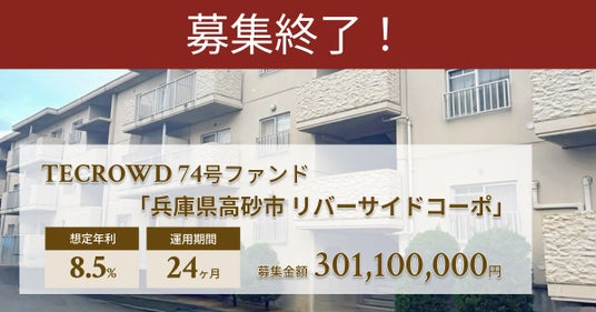 1口10万円から海外に投資ができる不動産クラウドファンディング「TECROWD」の74号ファンド(募集金額約3億円)が2025年1月21日(火)に募集を終了したことをお知らせいたします。