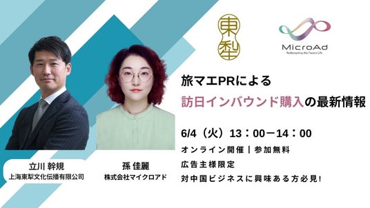 株式会社マイクロアド(本社:東京都渋谷区、代表取締役 執行役員社長:渡辺健太郎、以下 マイクロアド)と上海東犁文化伝播有限公司(本社:上海 総経理:張磊、以下「上海東犁」)は共同で、中国ビジネスに興味のある広告主向けのセミナーを開催いたします。