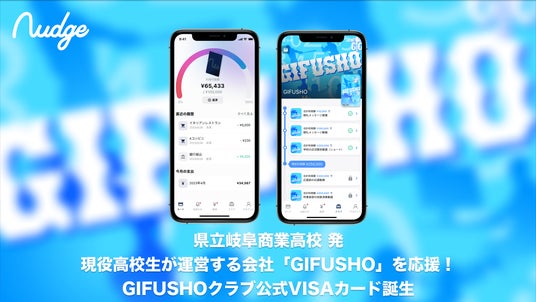 日本におけるチャレンジャーバンクを目指すナッジ株式会社(本社:東京都千代田区、代表取締役:沖田 貴史、以下「ナッジ」)は、県立阜商業岐高校(以下、「県岐商」)の生徒が主体的に運営している株式会社GIFUSHO(本社:岐阜県岐阜市正木町、代表取締役:塩谷 良久、以下「GIFUSHO」)を応援する「GIFUSHO」カードを本日2月6日より発行いたします。