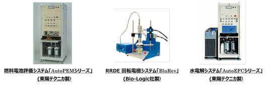 PEFC(固体高分子形燃料電池)およびSOFC(固体酸化物形燃料電池)の発電評価ができる燃料電池評価システムや水電解評価システム、触媒評価用の回転電極装置を紹介します。