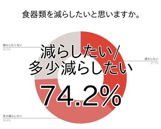 自宅の食器類が多めに感じている方は約7割で、自宅の食器類の収納スペースが少ないと感じている方が約3割でした。食器類の多さが気になる方が多いようですが、食器類を減らしたいと思っている方はどのくらいいるのでしょうか。アンケートで尋ねました。