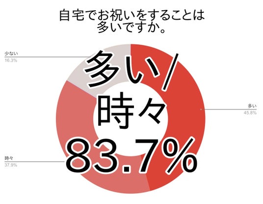 今回のアンケートでは、自宅でお祝いをすることが多い・時々すると答えた方は約8割(関東83.7%・全国75.3%)でした。