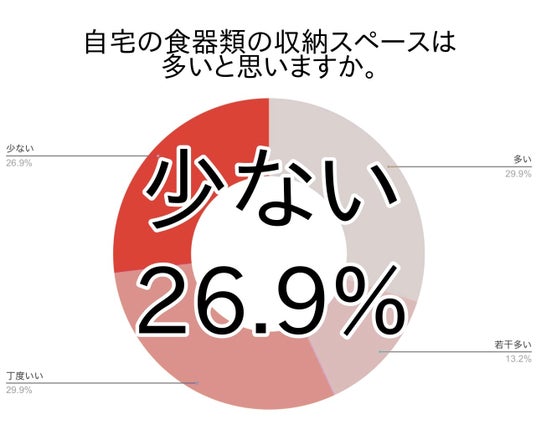 自宅の食器類が多めに感じている方が多いようですが、自宅の食器の収納スペースは多いのでしょうか。アンケートで尋ねました。