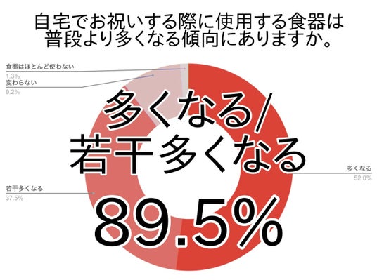 自宅でお祝いをするときには、お祝い向けの料理を準備して大皿から取り分けたり、ケーキを食べたりと、使う食器が多くなり、普段使いとは異なってくる場合も多いものです。そこでアンケートでは、自宅でお祝いする際に使用する食器は普段より多くなる傾向にあるか尋ねました。