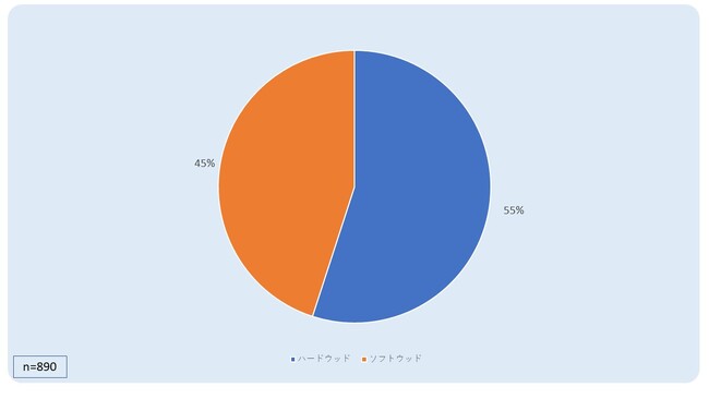 調査の結果では、回答者の大半(55%)がパレット製造にハードウッドを主に使用し、残りの45%はソフトウッドを使用していることが判明しました。