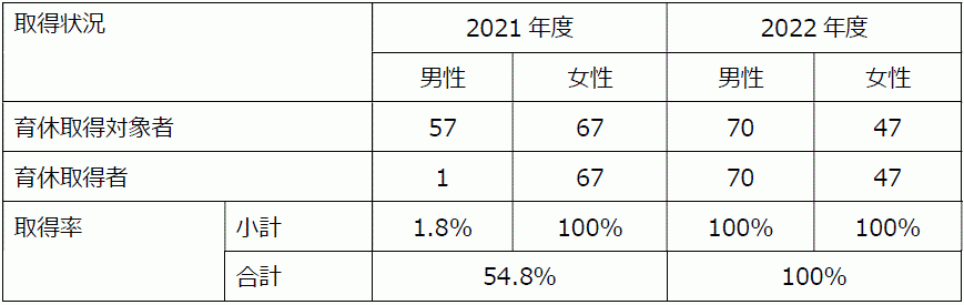 ・男女ともに育休取得を推進することで、多様な働き方を尊重する企業風土を醸成します。