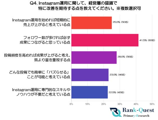 そこで、【インスタ運用代行】で検索順位No.1を獲得した実績(注1)を持つランクエスト(https://rank-quest.jp/column/column/instagramoperationagency/ )は、2025年5月14日にInstagram運用担当者200名を対象とした独自アンケート調査を実施しました。