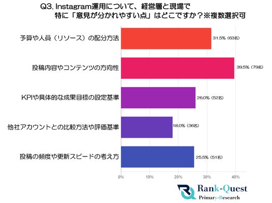 3. 経営層と現場で意見が分かれるポイント(回答者:インスタ担当者200名) ※複選択可(注3)