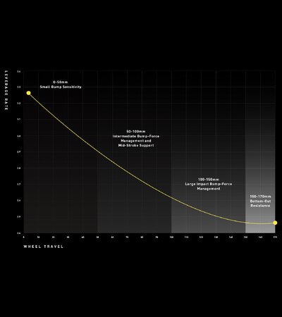 Kenevo SL 2のレバレッジレシオは、細かなバンプをしっかり拾い、ミッドストロークでは踏ん張り、大きな衝撃を受けてフルストロークするような場面もしなやかにいなします。モーターからのパワーを同調させ、よりハイスピードに対応し、シックスバーによるキネマティクスのポテンシャルをフルに活かすために、スペシャライズドのエンジニアたちはKenevo SL 2専用のバルブとスプリングカーブを寝る間も惜しんで開発。特別なカスタムをせずとも、初めて乗るその日から最高のパフォーマンスを発揮します。