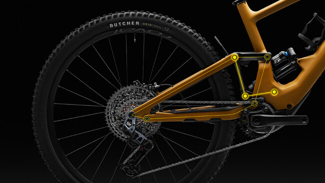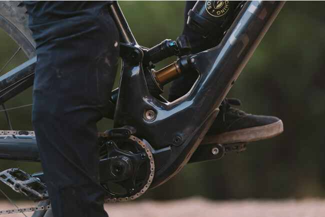 Kenevo SL 2のシックスバー・リンケージは、雄大で過酷なトレイルに適した究極のサスペンションリンケージ。重心(リンケージとショック)の位置を下げて中心に集め、安定していながら反応性に優れたハンドリングや、トレイルでの機敏な乗り味を生み出します。