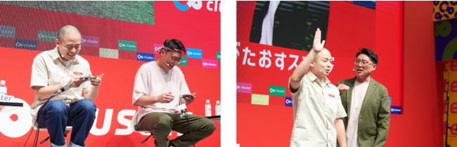様々なゲストが来場し、cluster内で遊べるメタバースゲームを通して、clusterを遊びたおしていただきました。来場されている方との対戦型ゲーム大会も開催し、人気ストリーマーとの対決など、来場者の方にもclusterブースでしかできない体験をしていただくことができました。