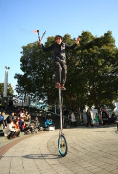 笑顔と楽しいことが大好きな、日本通で陽気な外国人大道芸人。 一輪車を用いた痛快なジャグリングとトークによるパフォーマンスで、横浜を中心に活動中。