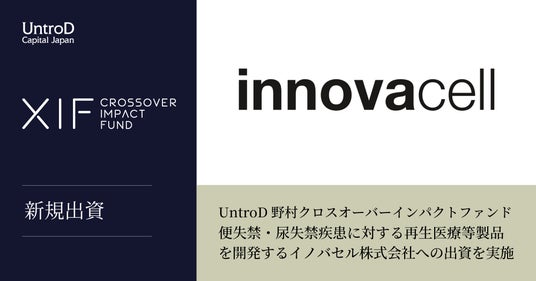 UntroD Capital Japan株式会社(所在地:東京都港区、代表:永田 暁彦、以下、「当社」)が運営するUntroD野村クロスオーバーインパクトファンド(以下、「XIF」)は、便失禁・尿失禁疾患に対する再生医療等製品を開発するイノバセル株式会社(本社:東京都品川区、代表取締役 Co-CEO:ノビック・コーリン、代表取締役 Co-CEO:シーガー・ジェイソン、以下、「イノバセル」)へ投資を実施したことをお知らせ致します。イノバセルは今回の調達資金をもとに、切迫性便失禁の治療を対象とした再生医療等製品「ICEF15」の開発を進めて参ります。