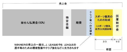スポーツくじの売上金から、当せん払戻金、経費等を除いた収益の2/3がスポーツ振興の助成に充てられており、この助成金が日本のスポーツを育てる大切なパワーになっています。