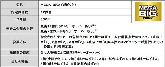 独立行政法人日本スポーツ振興センター(JSC)は、1口300円で1等最高当せん金が日本くじ史上最高額※1の12億円※2となる、スポーツくじ「MEGA BIG」を毎週販売※3しており、これまでに37本の1等12億円当せんが誕生※4しております。