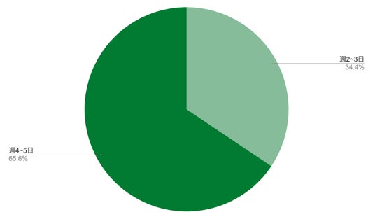 Salesforce案件における稼働日数の分布を見ると、週4~5日の案件が全体の65.57%を占めており、フルタイムに近い勤務形態が主流となっています。一方で、週2~3日の働き方も34.43%と、一定の割合で存在しています。この結果から、Salesforce市場では柔軟な勤務形態が受け入れられており、働き手のニーズに応じた多様な選択肢が提供されていることがわかります。