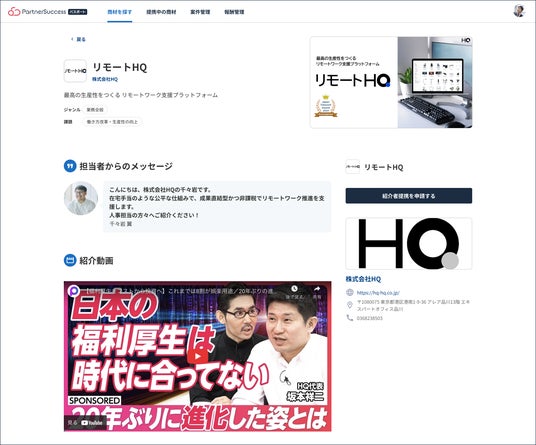 パートナーサクセス株式会社(本社:東京都港区、代表取締役 CEO:永田雅裕、以下パートナーサクセス社)は、紹介マーケット「PartnerSuccess パスポート」の展開において、ビジネス映像メディアを運営するPIVOT株式会社(本社:東京都渋谷区、代表取締役:佐々木紀彦、以下PIVOT社)との連携を開始し、協業施策を開始したことをお知らせします。