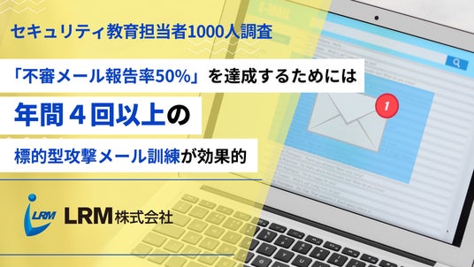 LRM株式会社(本社:兵庫県神戸市、代表取締役:幸松哲也)は、情報セキュリティ教育における標的型攻撃メール訓練の効果を明らかにするため、民間企業および自治体・官公庁に勤務する1,159名の従業員を対象に、標的型攻撃メール訓練(※1)の実施状況と不審メール報告率(※2)に関する実態調査を実施しました。