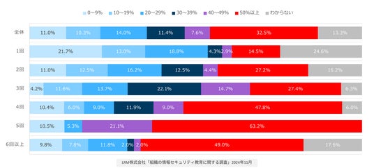 標的型攻撃メール訓練における報告率(年間の訓練実施回数別)