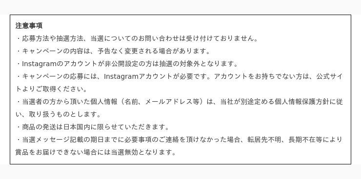 当選者には、2023年10月上旬にInstagramのDMにてご連絡いたします。