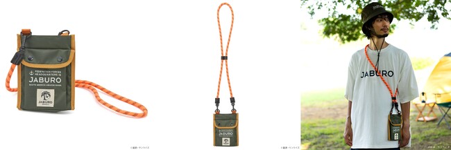 本商品は1979年に放送されたテレビアニメ『機動戦士ガンダム』の世界観を元に、劇中内に登場する地球連邦軍本拠地である「JABURO」の地名をブランドロゴとして採用。野外フィールドでも活躍するシンプルでスタイリッシュなアウトドアスタイルを提案するブランドです。第2弾となる今回のコレクションでは、バケットハット、バックパック、ウエストバッグ、サコッシュの4アイテムをご用意いたしました。ジャングルをイメージした配色のバッグ類はブランドロゴをシンプルに配したデザインで、アウトドアシーンからタウンユースまで幅広く使いこなせるアイテムとなっています。