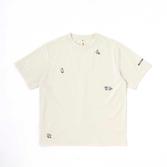アーティスト長場雄氏デザインによるイリオモテヤマネコを中心とした西表島の様々な生物を、アッパーに賑やかにプリントしたSHANTI ARTS (シャンティ アーツ)。デザインが最大限に映えるように、合わせやすいカラーでまとめました。