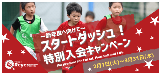 新年度へ向けこれからフットボールを始めるお子様や、より上達したいお子様、身体を動かしたいお子様などを対象に、当スクールではそれぞれの目的にあったプログラムを提供しています。また当スクールでは、新型コロナウイルス感染症予防対策として、安全面に配慮したガイドラインに沿ってスクールを実施していますので、安心してご参加ください。ぜひこの機会に東急Sレイエス フットボールスクールで一緒にフットボールを楽しみましょう♪皆様のご入会をお待ちしております。