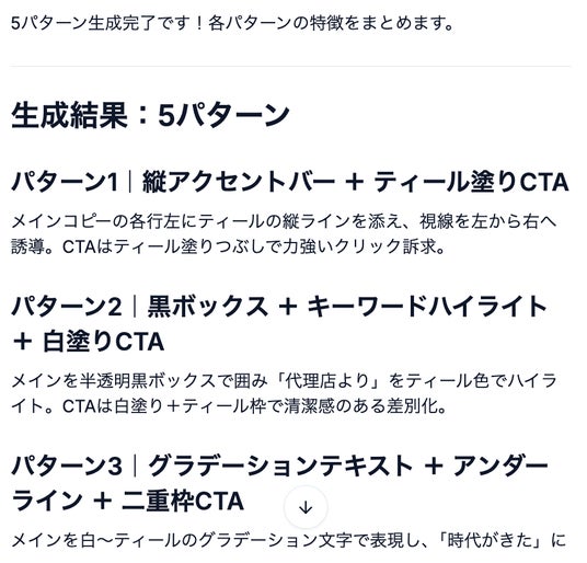 Step 3: AIがコピーとCTAの改善案を5パターン生成し、バナー画像として出力する