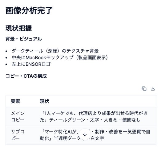 ~ 既存バナーをENSORに渡すだけで、コピーとCTAを改善した5パターンを即時生成。インハウスのABテスト素材を外部依頼なしに量産できる ~