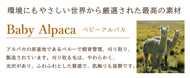 アルパカの中でも細いベビーアルパカを使用しているので軽くて柔らかいのが特徴です。