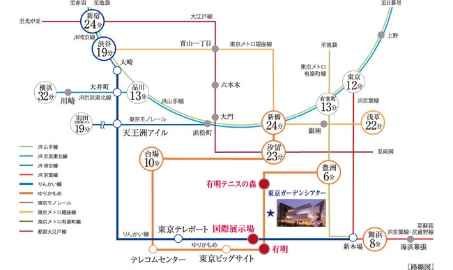 アクセス:ゆりかもめ「有明」駅から徒歩4分、「有明テニスの森」駅から徒歩3分、りんかい線「国際展示場」駅から徒歩6分