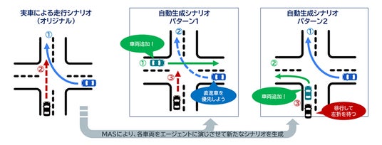 自動車シミュレータにて、既存シナリオに他車両を追加し、新たな走行シナリオを自動生成