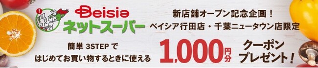 「ベイシアネットスーパー」で初めてお買い物をされるお客様限定で、簡単3ステップで入手できる1,000円OFFクーポン※をプレゼントします。クーポン獲得のエントリー期間は2022年11月20日(日)までです。