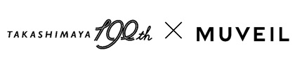 台座の背面には、高島屋創業190周年のロゴと、MUVEILのロゴがあしらわれています。