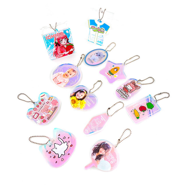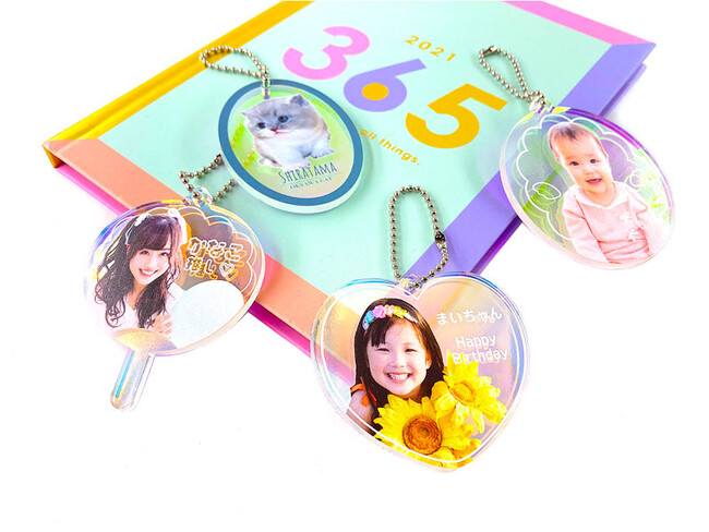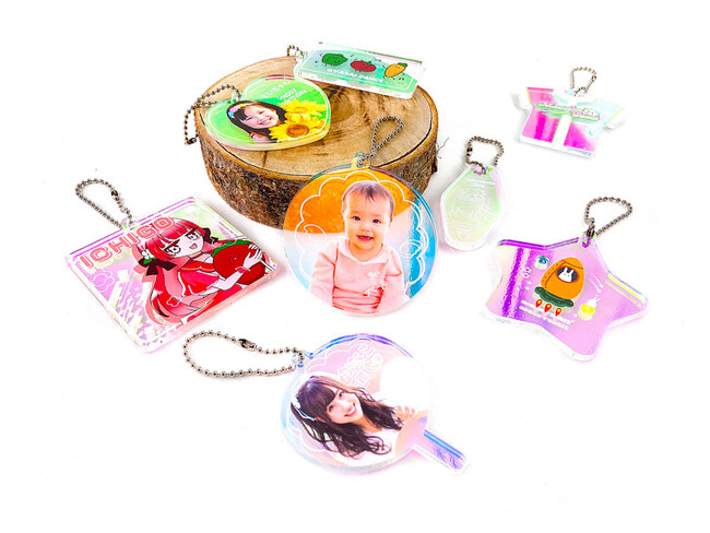 アクリル素材にオーロラやラメを加え、その他にも推しのカラーを揃えた特別な素材で、さらに魅力的な写真キーホルダーを制作することができます。ぜひ愛情あふれる写真キーホルダーを手に入れましょう!