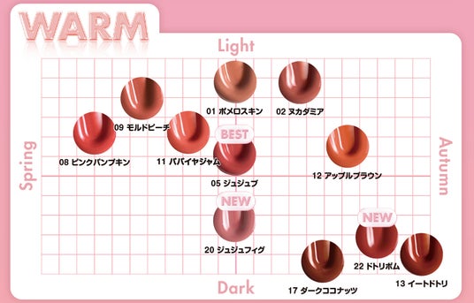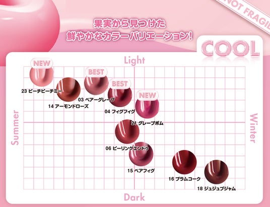 ツヤ感UP・色もちUP! (※2) 全てにおいてアップグレードされたことに加えて、果実を連想させる多彩なカラーバリエーションも注目ポイントです。