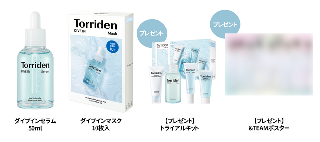セット内容:ダイブインセラム50ml、ダイブインマスク10枚入、トライアルキット(プレゼント)、&TEAMポスター(ポップアップストア限定)