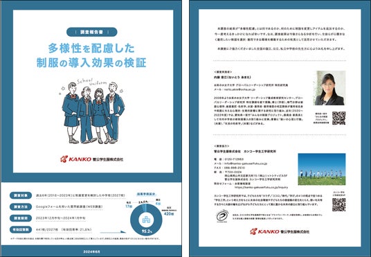 子どもたちと学校を取り巻くさまざまな社会課題を解決するスクールソリューションカンパニーの菅公学生服株式会社 (本社:岡山市北区駅元町、代表取締役社長:尾崎 茂 以下:カンコー学生服)のカンコー学生工学研究所は、国立大学法人お茶の水女子大学(東京都文京区大塚、学長:佐々木泰子以下:お茶の水女子大学)グローバルリーダーシップ研究所、特別研究員:内藤 章江氏と共同で「多様性に配慮した制服の導入効果の検証」の調査・研究を行い、調査報告書をまとめました。