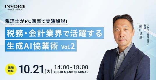 約16,000社に対して通信費や水道光熱費などの一括請求サービス「Gi通信」「OneVoice公共」を提供する、株式会社インボイス(代表取締役:仁多見 斎 本社:東京都千代田区)は、アクタス税理士法人(代表:粕谷 直人 本社:東京都港区)の藤田 益浩氏にご登壇いただいた「税理士がPC画面で実演解説! 税務・会計業界で活躍する生成AI協業術 vol.2」をオンデマンドセミナー形式で配信することをお知らせ致します。