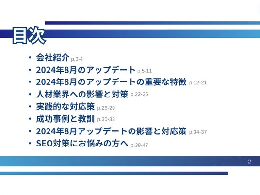 今回のアップデートの影響によるこれからの変化に備え、適切な対応策を講じるためのポイントも取り上げていますので、ウェブサイトの検索順位向上を目指し、競争力を強化したい企業担当者の方にはおすすめの内容です。