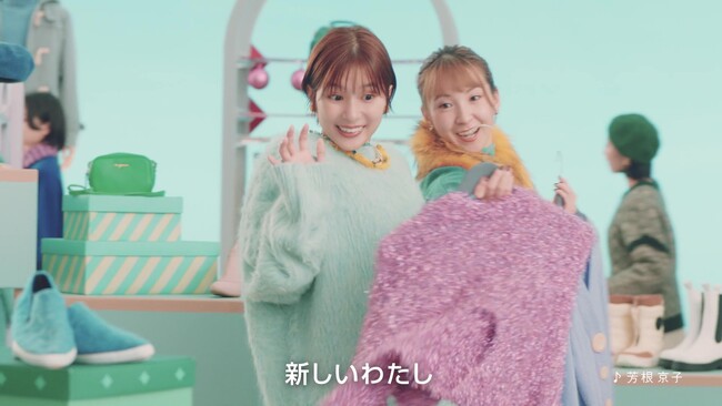 音楽に合わせて、リズミカルに動きながらお買い物を楽しむ芳根さんや、指を鳴らすと、着ていた洋服が一瞬で変わり、「あたらしい自分」に変化する演出に注目です。