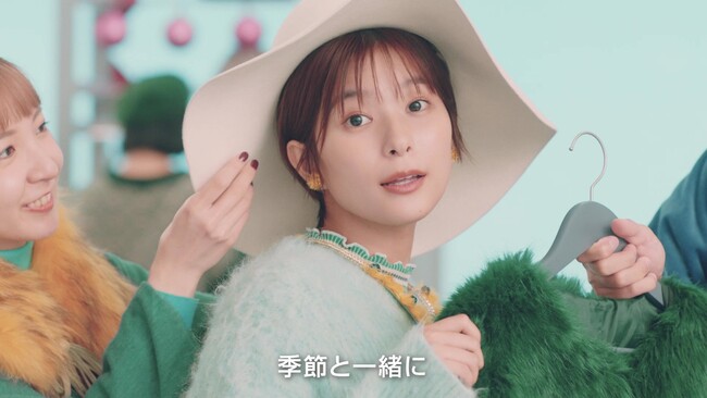 今回は、芳根さんがお買い物をする中で、今まで着ていなかった洋服やファッショングッズに出会い、「あたらしい自分」を見つけるというCMになっております。