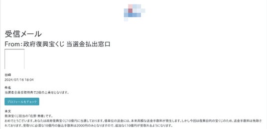 昨年12月に検知していたJICAのフィッシングサイトが今月再登場しています。政府復興宝くじ当選金の支払い窓口といった内容で個人情報を詐取する手口です。