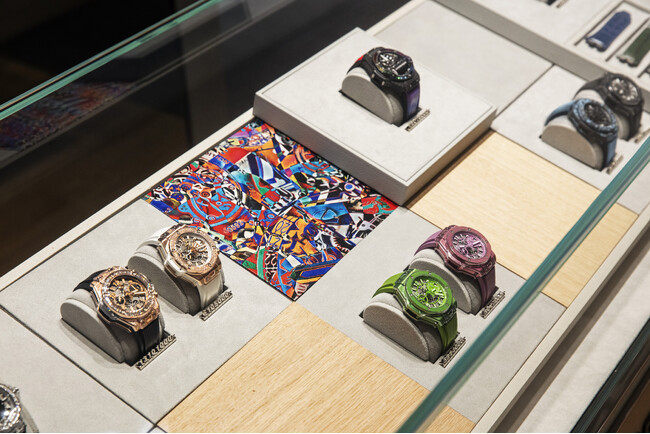 新宿エリア初の直営ブティックとして2019年にオープンした「ウブロ伊勢丹新宿ブティック」が、より開放的で洗練されたスペースとして新たに誕生しました。これまでの2倍以上に広がった店内は、グレーや ベージュなどのシックな色を基調に、色彩豊かで華やかなポップアートが融合した内装で、ブランドコン セプト「アート・オブ・フュージョン(異なる素材やアイデアの融合)」が表現された特別な空間です。