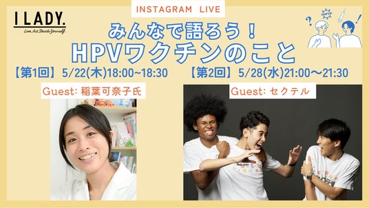 I LADY.では、2023年開催の「#HPVってなんですか」、2024年開催の「Let’s think HPV!~子宮頸がん・HPVから身を守るには?~」に続き、本年も「HPV」「子宮頸がん」をテーマに全2回のインスタライブを実施します。第1回は産婦人科医の稲葉可奈子氏に、HPVとワクチン、および子宮頸がんの基本的な情報を共有していただきます。第2回は性教育団体「セクテル」の瀬戸真明空氏・福田大治郎氏・本久碧氏に、男性ユースの視点からHPVワクチン接種に関する考えや経験をお話しいただきます。一緒に学び、一緒に考えていきましょう!