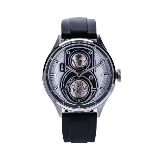 ATL Liteの文字盤は、11個の精密に作られた部品から構成され、立体的で洗練された外観を実現するために、ひとつひとつ丁寧に手作業で組み立てられています。オープンハート機構からサテン仕上げと鏡面仕上げを使い分けたケースまで、あらゆる面で職人の技と二眼レフカメラにインスパイアされたデザインが調和しています。