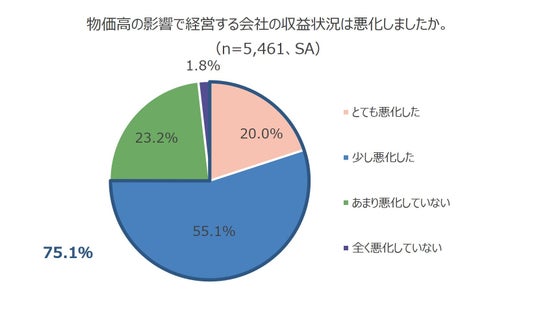 75.7%が物価高の影響があると回答 そのうち会社の収益状況が「悪化した」は7割超
