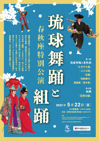 京都芸術大学舞台芸術研究センター・公益財団法人国立劇場おきなわ運営財団の主催で、京都芸術劇場 春秋座にて、2022年5 月22 日(日)「琉球舞踊と組踊 春秋座特別公演」を上演いたします。