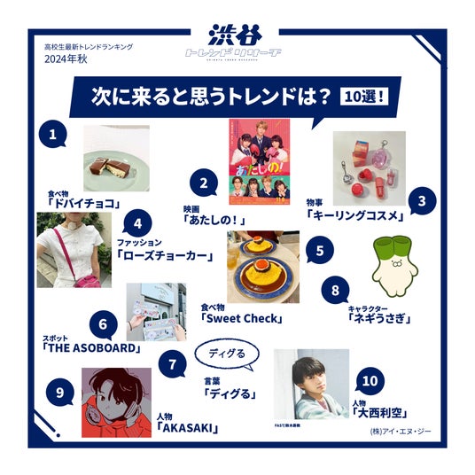 【2024年秋!高校生最新トレンドランキング】 Z世代の流行語や話題の食べ物・ポーズなど全15項目を発表!ネクストトレンドでは入選コメントも掲載!渋谷トレンドリサーチ2024年秋の特大号